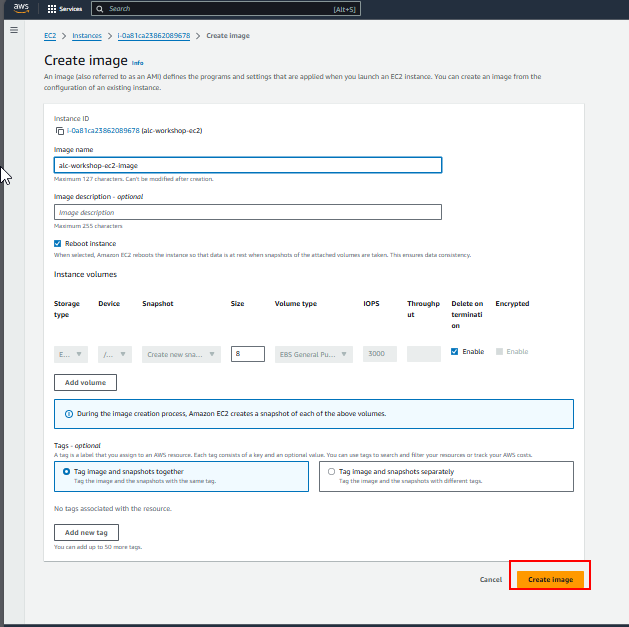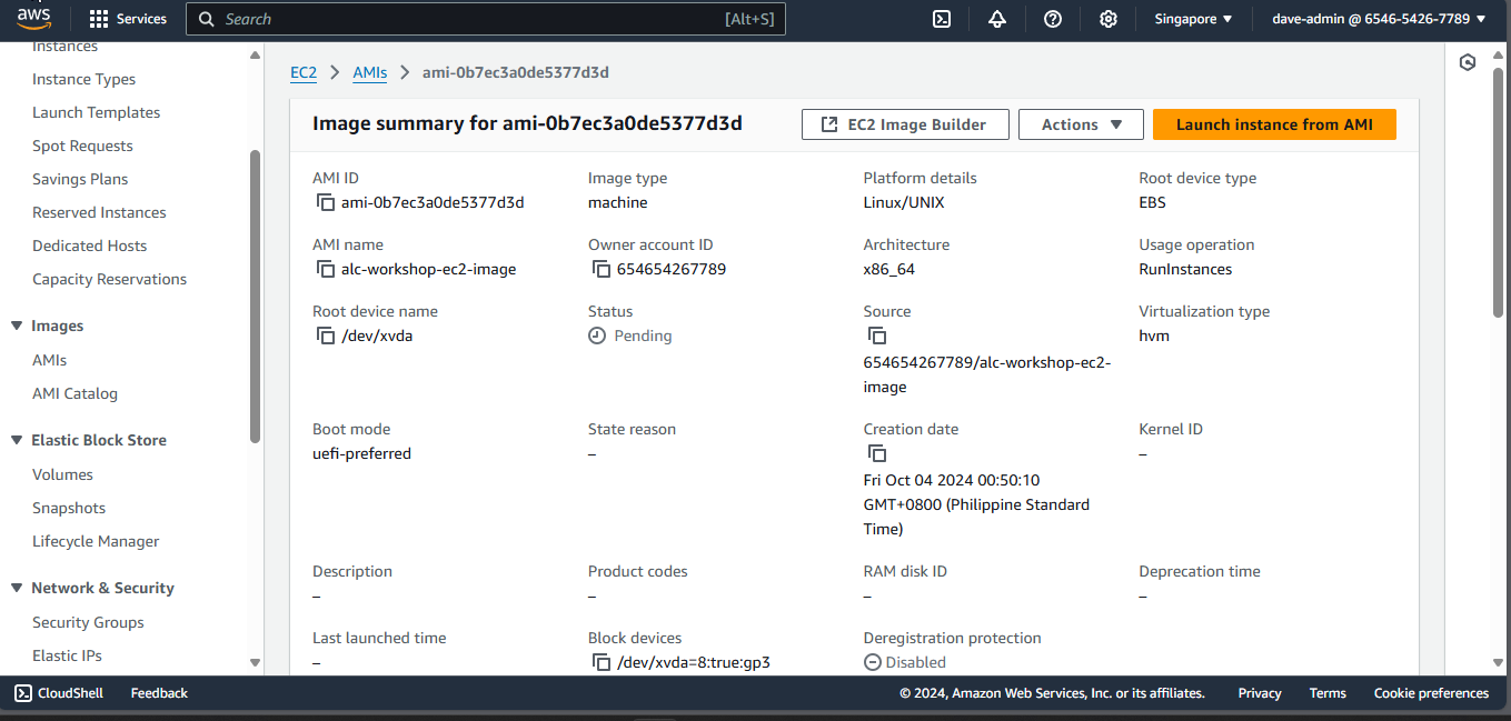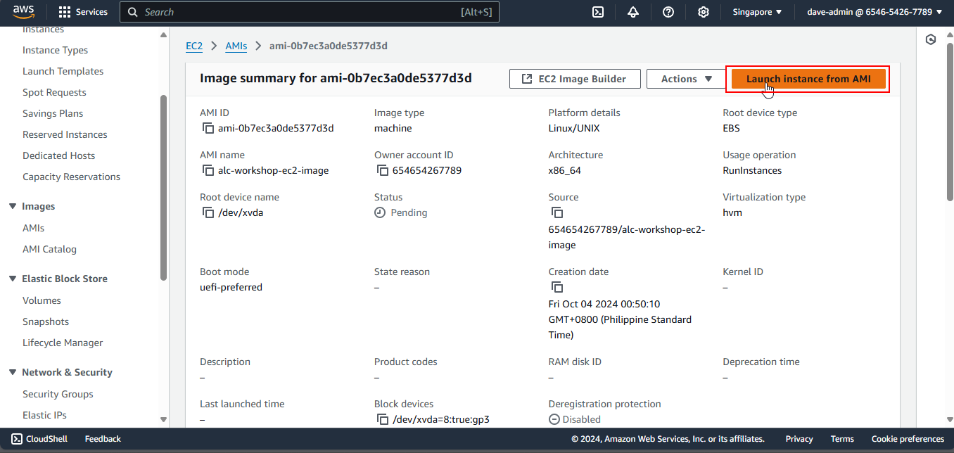- Creating a Pre-built AMI from an Instance: Steps to create a pre-built AMI with the image captured from our instance.