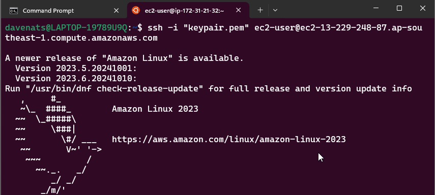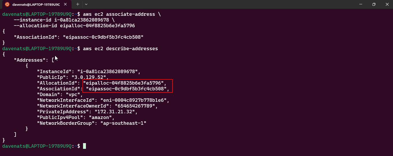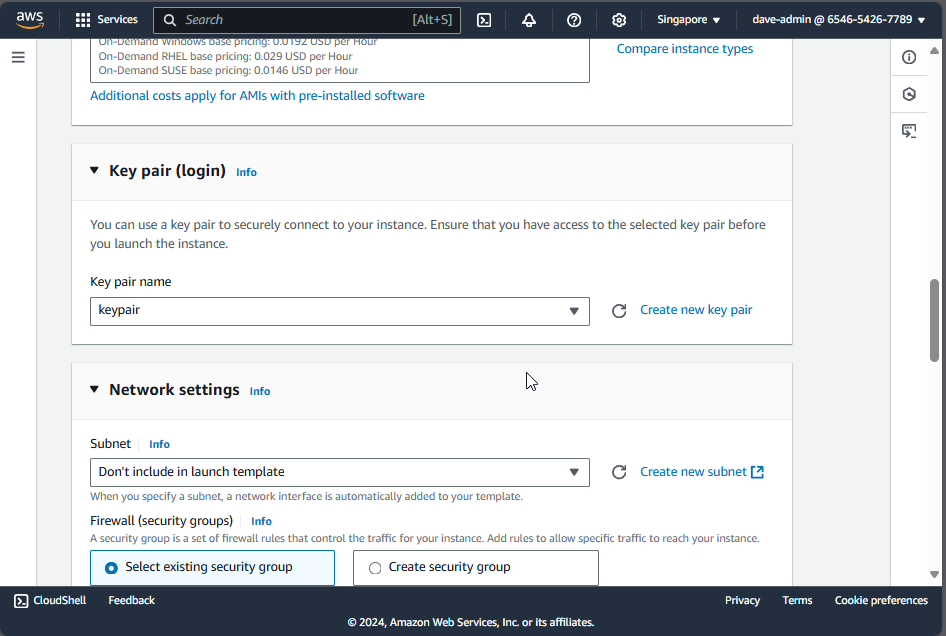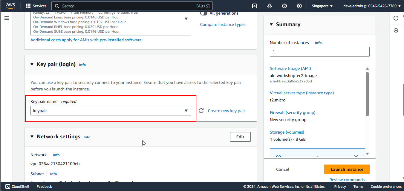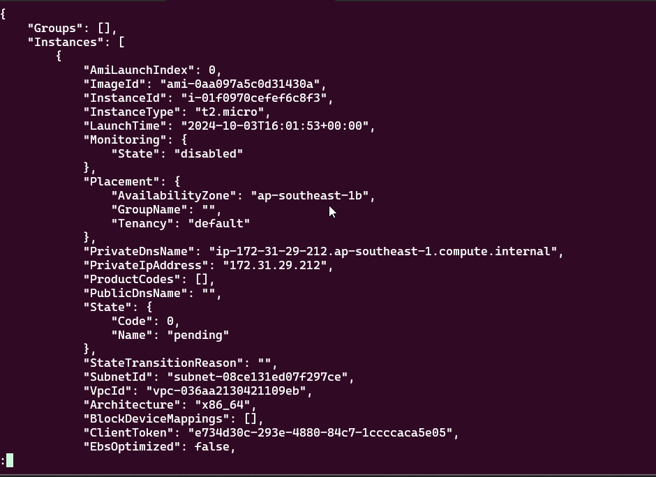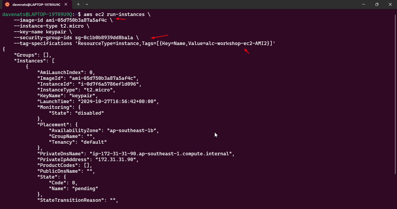 <ami-id>,<instance-type>,<security-group-id>, and<key-pair-name>with your values. For mine it would be: