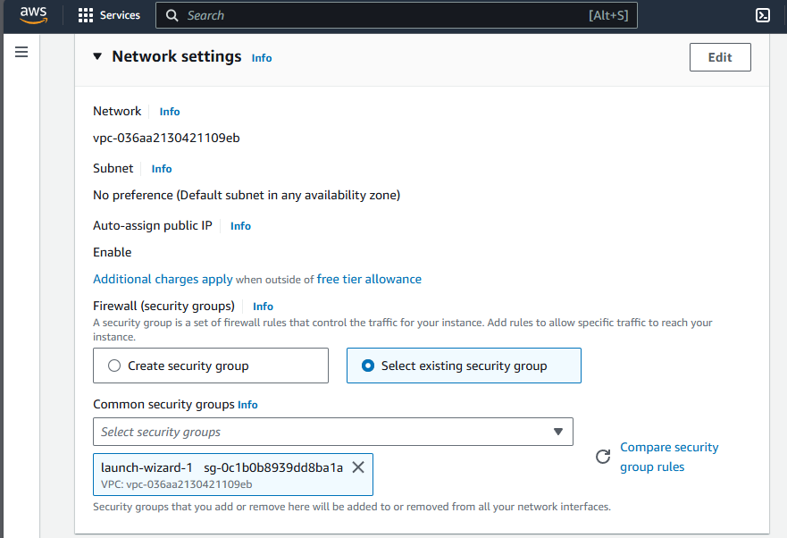 - In the Network settings, select your VPC and choose the subnet where your instances are located.