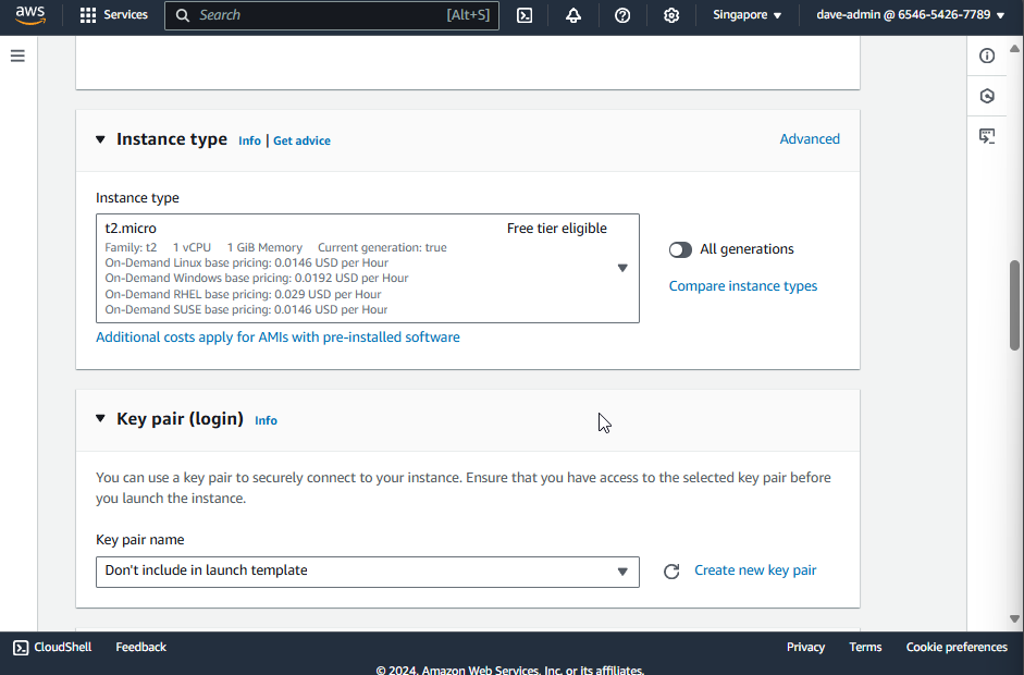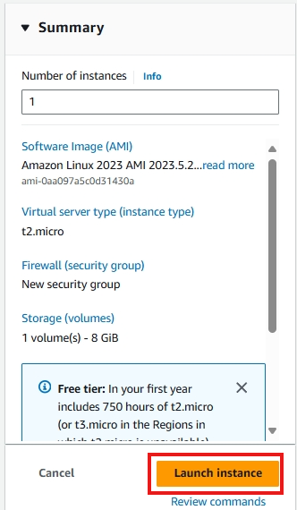 - Choose an Instance type (e.g., t2.micro for free tier).
