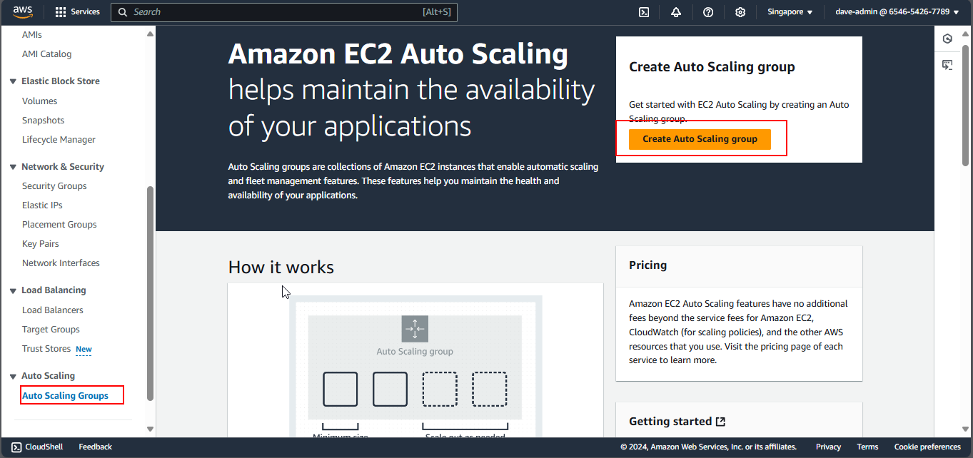- In the EC2 Dashboard, under Auto Scaling, click Auto Scaling Groups.