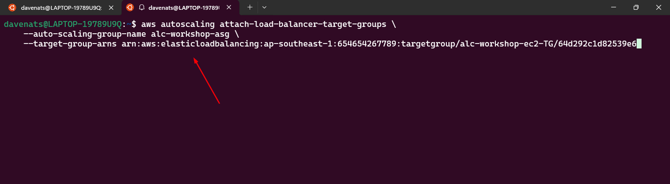 - Also verify the target group is attached to the Auto Scaling Group using the command: