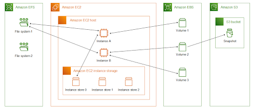 Explore the range of EC2 storage available particularly understanding what is EBS and EFS. The following includes in this section: