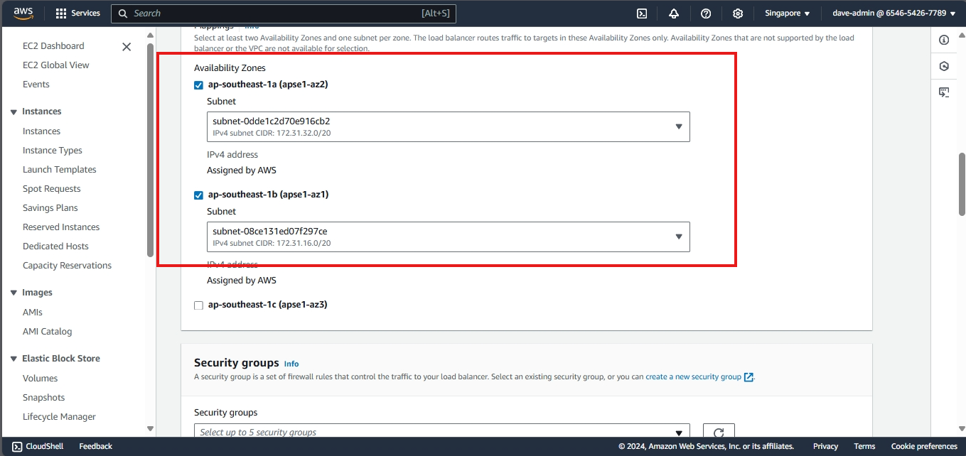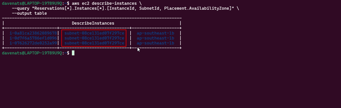 The subnet’s are as follows: subnet-0b8a1b62a519af134 , subnet-0dde1c2d70e916cb2 and subnet-08ce131ed07f297ce.