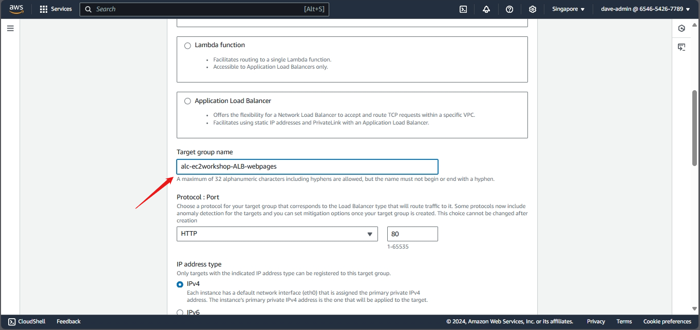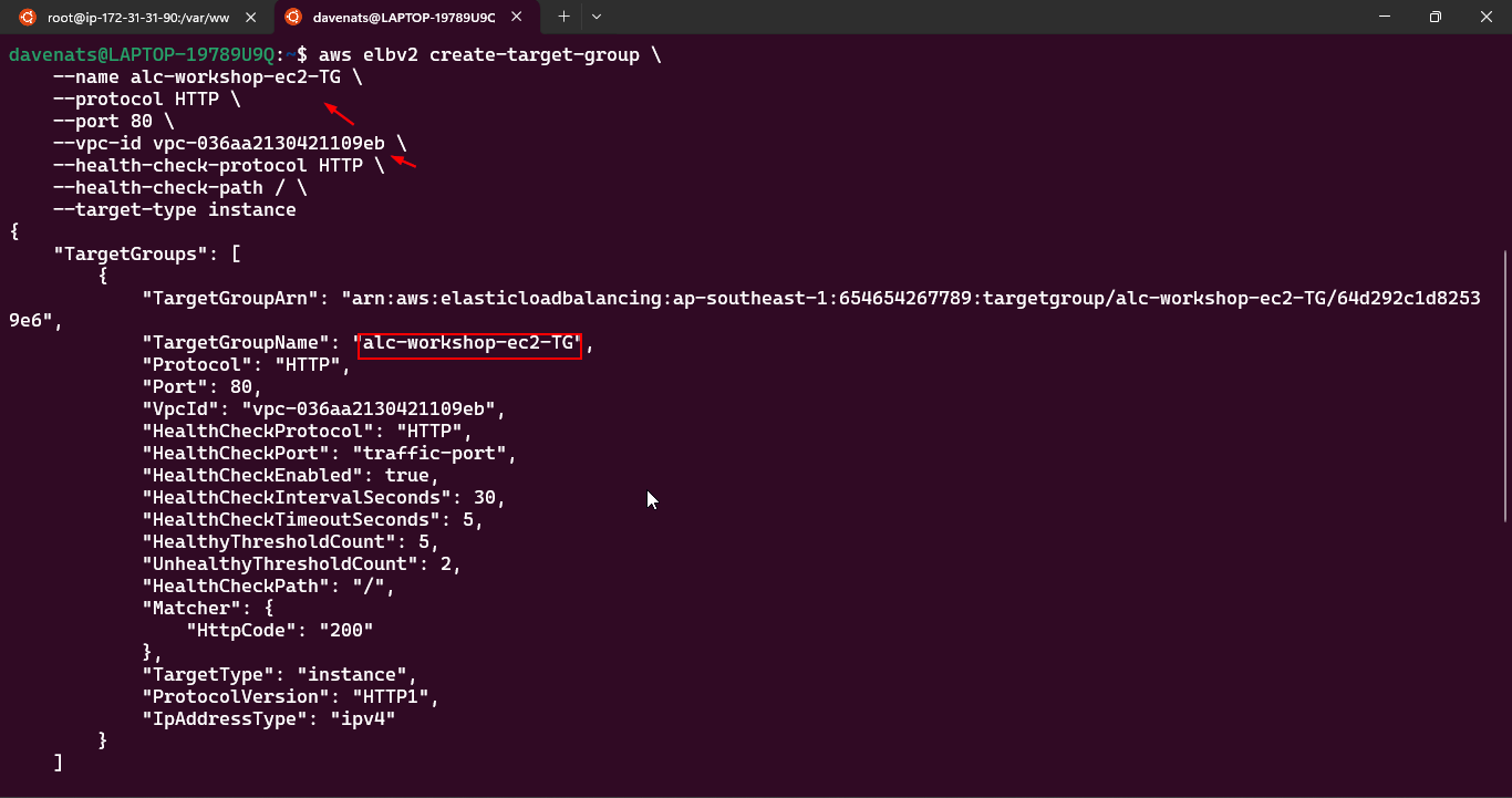 arn:aws:elasticloadbalancing:ap-southeast-1:654654267789:targetgroup/alc-workshop-ec2-TG/64d292c1d82539e6.