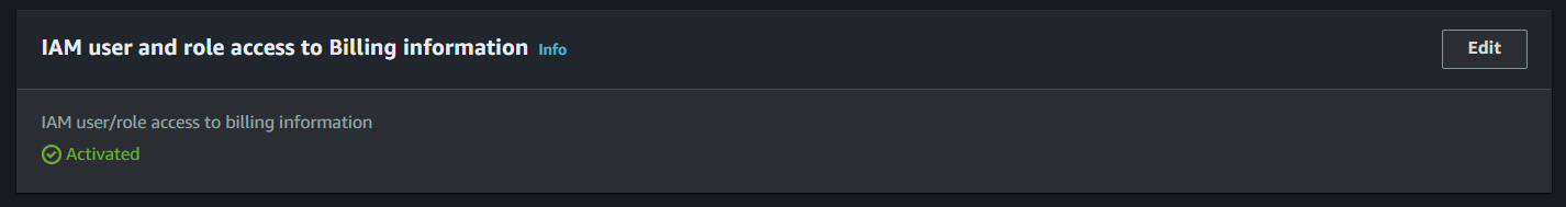 Scroll down and look for IAM user and Role Access to Billing Information and then click on Edit.