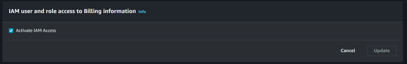 Click on the Activate IAM Access checkbox to allow access. Afterwards, click on Update.