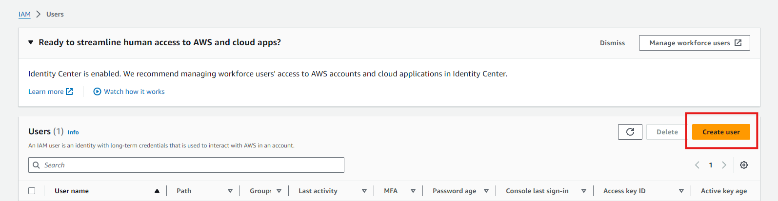 Go to the AWS Management Console and look for IAM on the Services Tab.