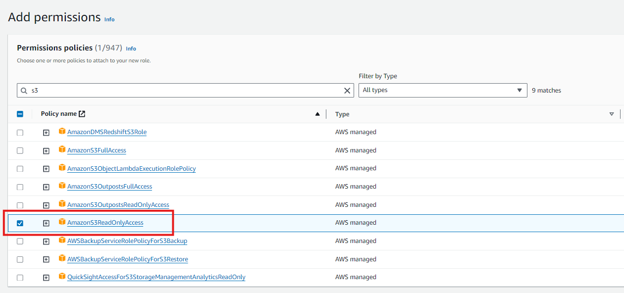 Select the Policy: If you chose a user, group, or role, you’ll see a list of associated policies. Check the box next to the policy you want to simulate. In this case, we want to test the permissions set to user